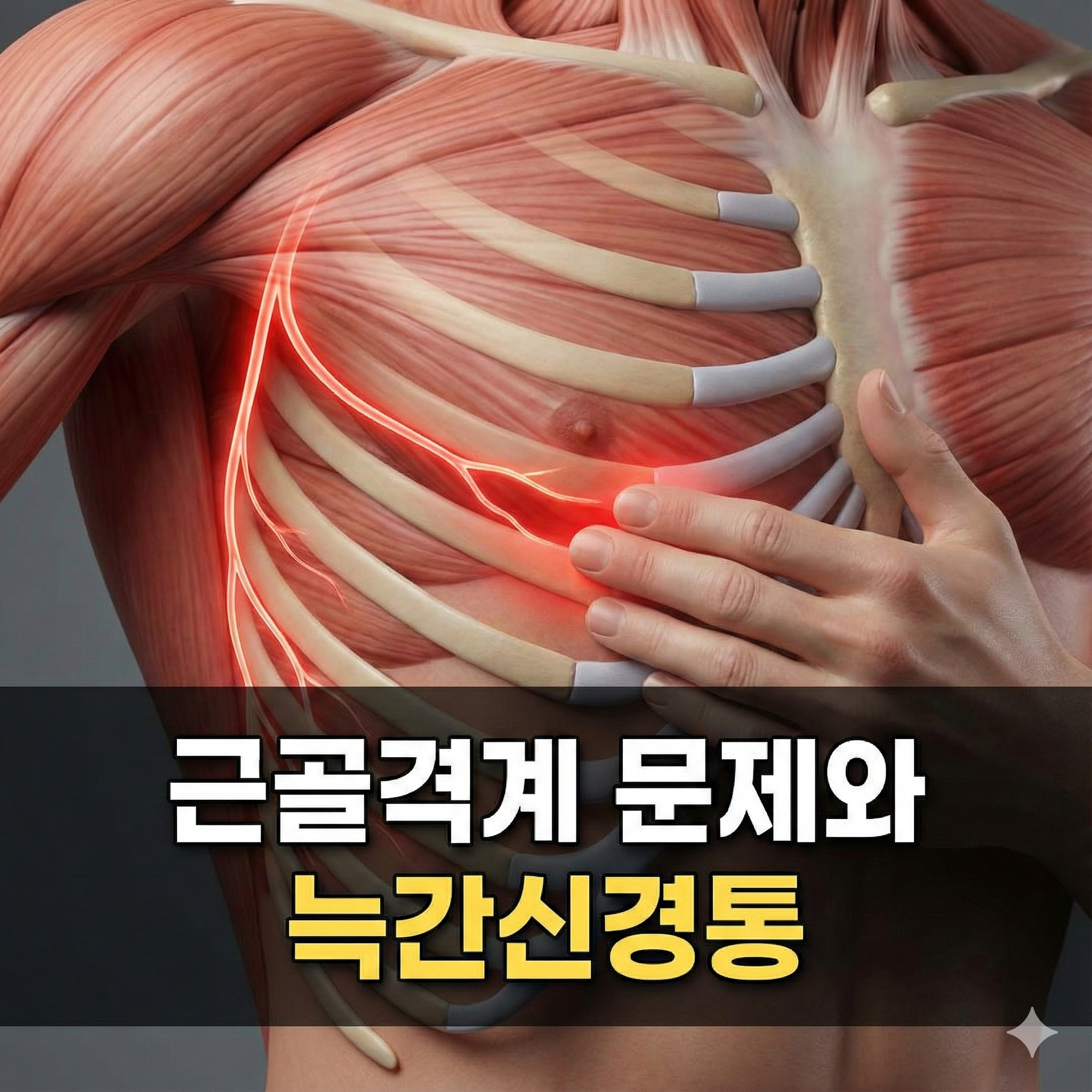 특히 갈비뼈 사이에 흐르는 신경에 염증이 생기거나 압박을 받는 '늑간신경통'이 대표적입니다.