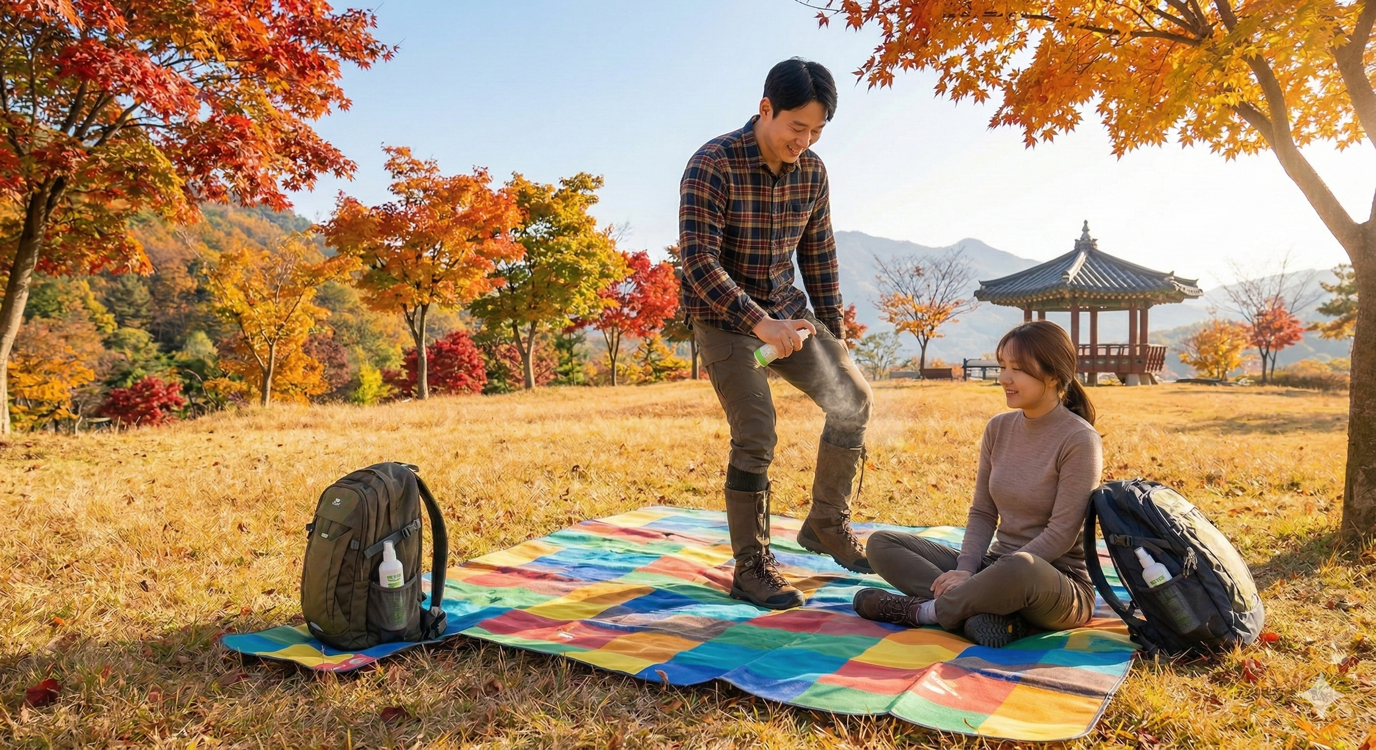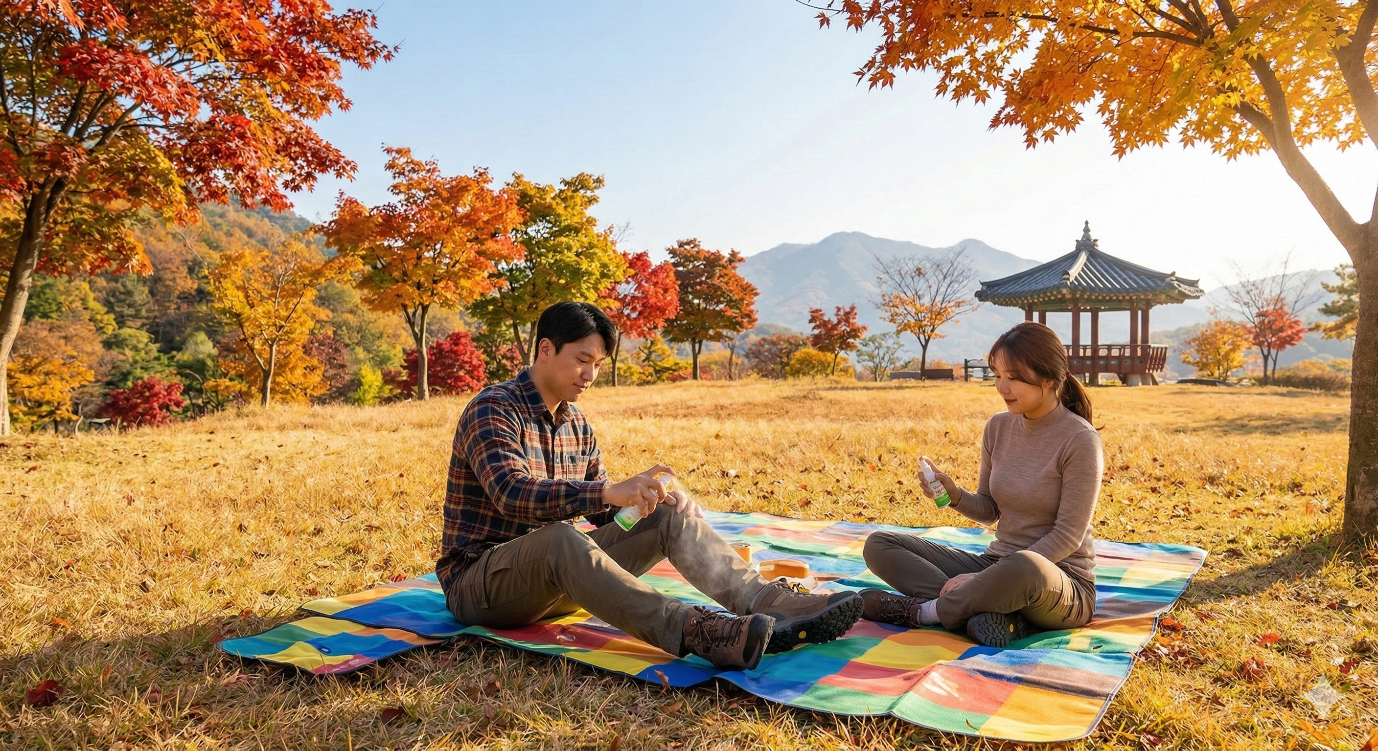 - 돗자리 사용: 풀밭에 직접 앉거나 옷을 벗어두지 말고 반드시 돗자리를 사용하세요.