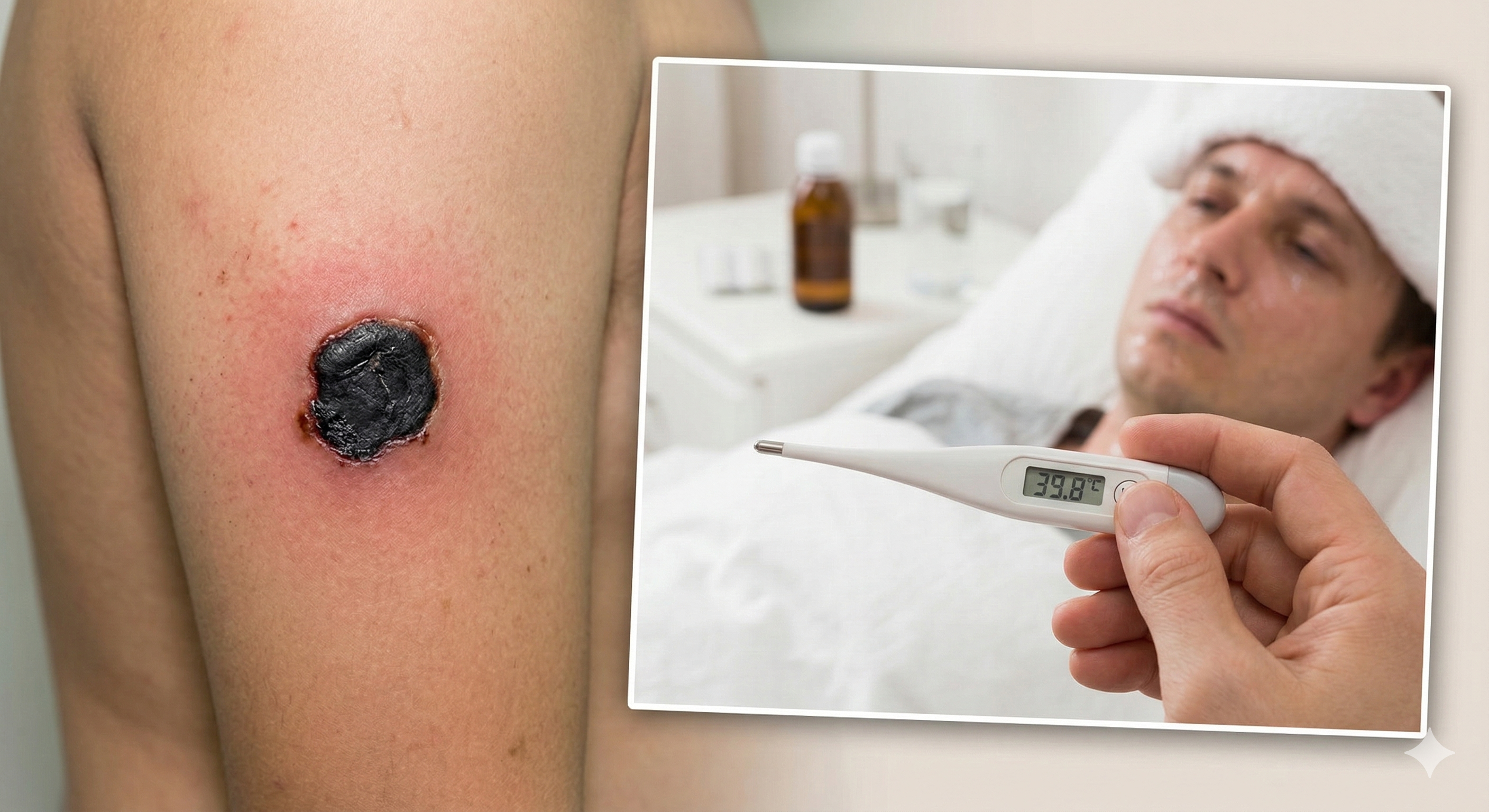만약 원인 모를 고열과 함께 이런 검은 딱지를 발견했다면 즉시 병원을 찾아야 합니다.
